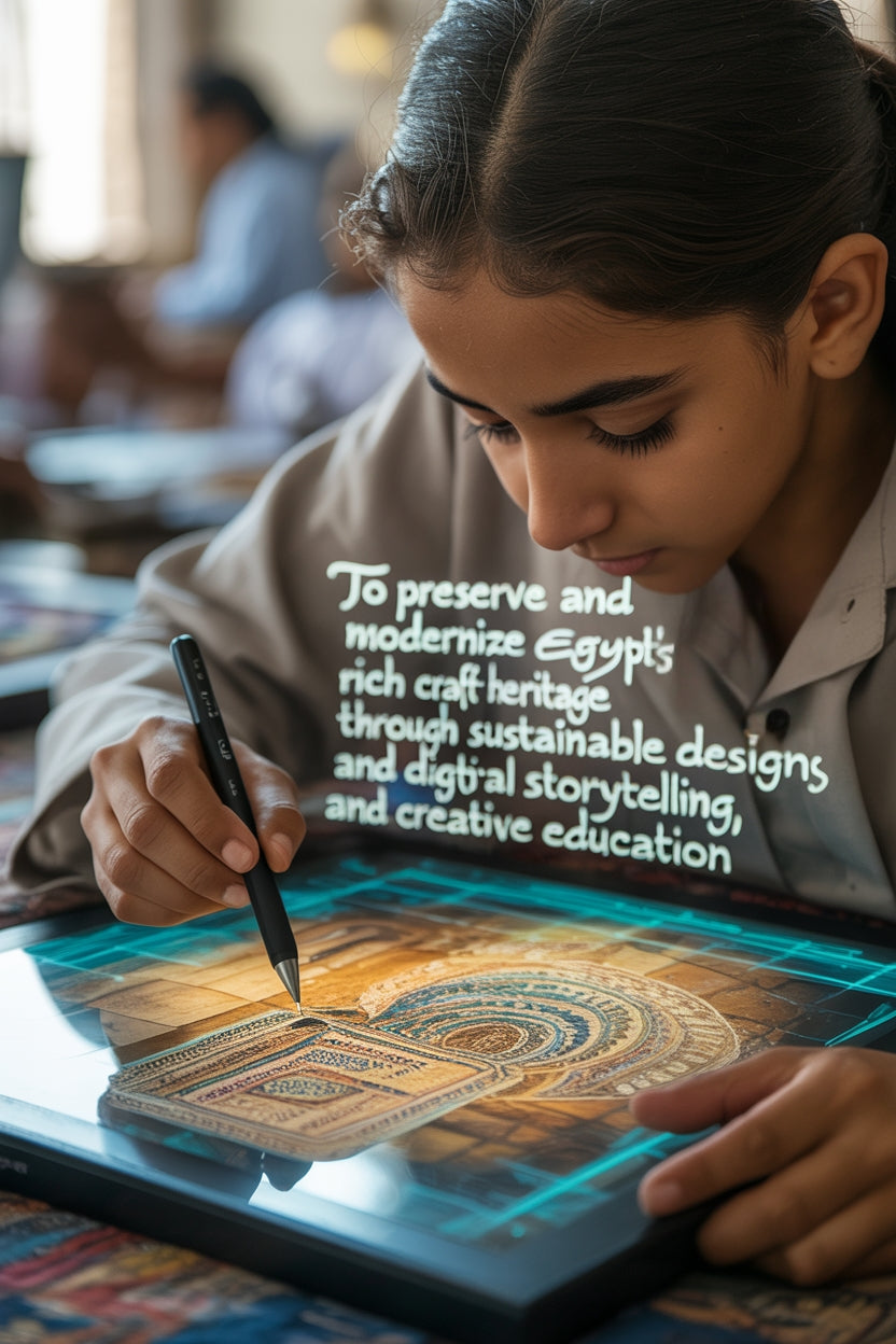 To preserve and modernize Egypt’s rich craft heritage through sustainable design, digital storytelling, and creative education — building an ecosystem where artisans thrive and culture inspires.
